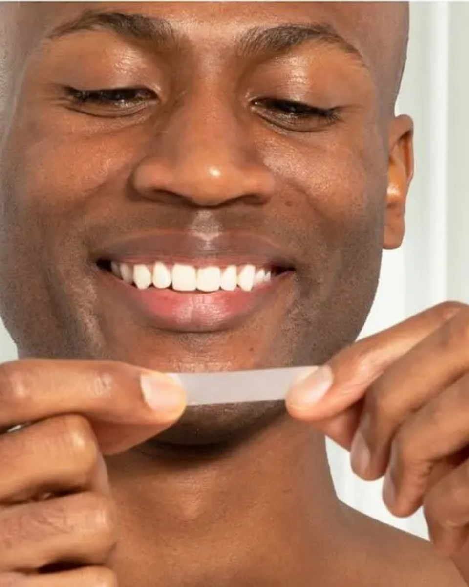 Streifen abziehen, am oberen und unteren Zahnreihe anbringen, 30 Min. einwirken lassen, abziehen & lächeln!